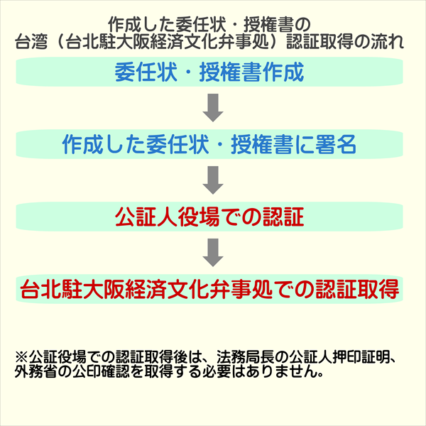 委任状・授権書の台湾(台北駐大阪経済文化弁事処)認証
