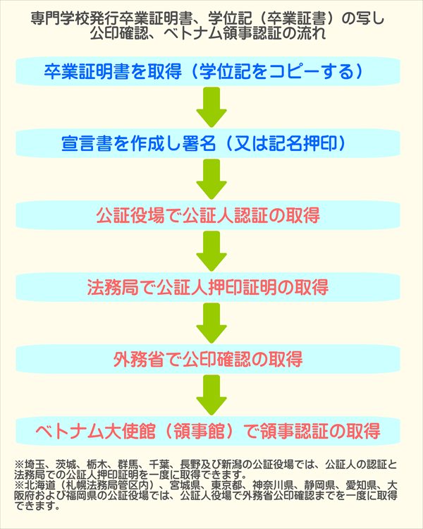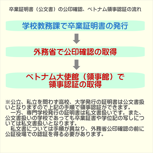卒業証明書(私文書)のベトナム領事認証取得手続き流れ