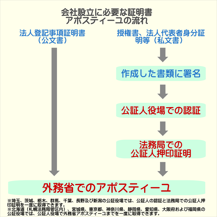 会社設立に必要な書類のアポスティーユ流れ